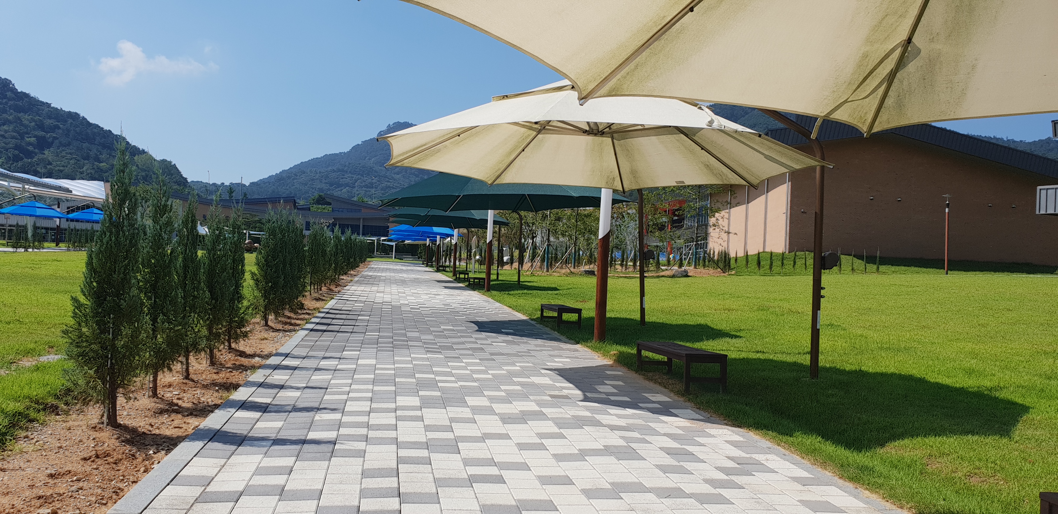 잔디밭에다 곳곳에 그늘막 있는 벤치가 있어서 시원해지면 피크닉 오면 좋을 듯.
