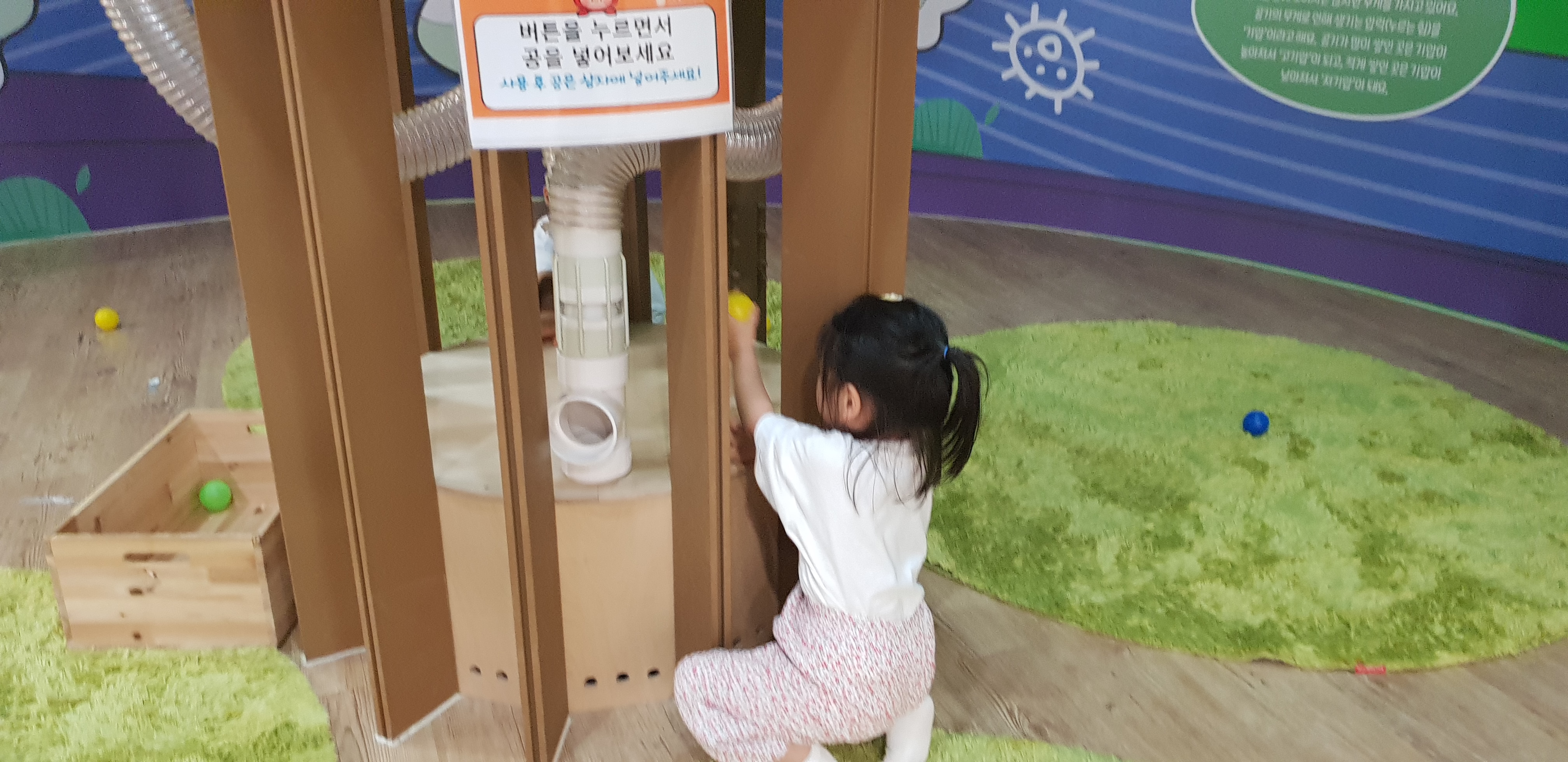 이건 공을 넣으면서 버튼을 누르면 공이 관을 타고 이동해서 옆으로 숑-하고 빠진다.