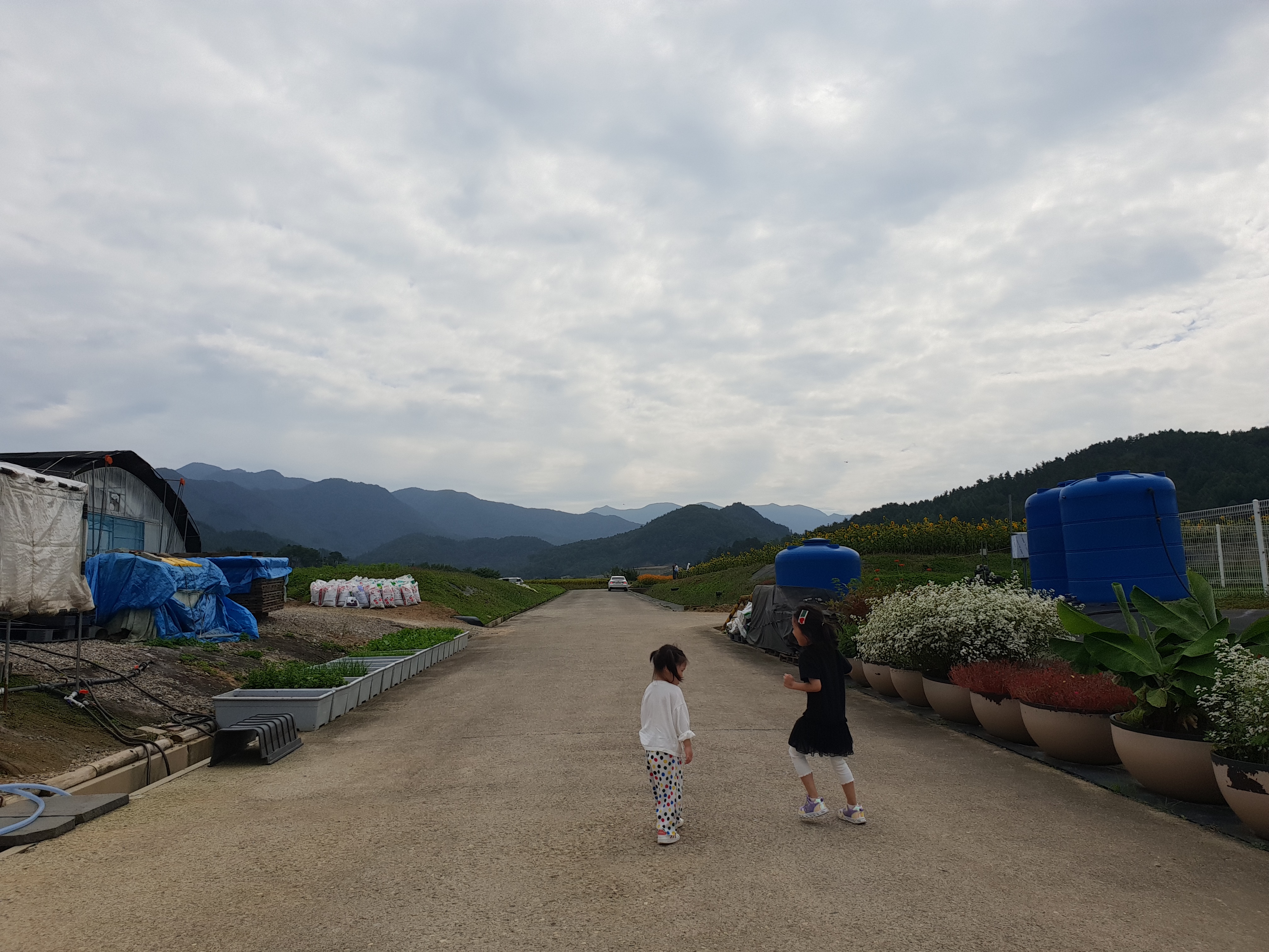 진안농업기술센터 해바라기밭이 밭둑(?) 위에 있어 아이들이 떨어질까 살짝 신경 쓰이긴 했다.