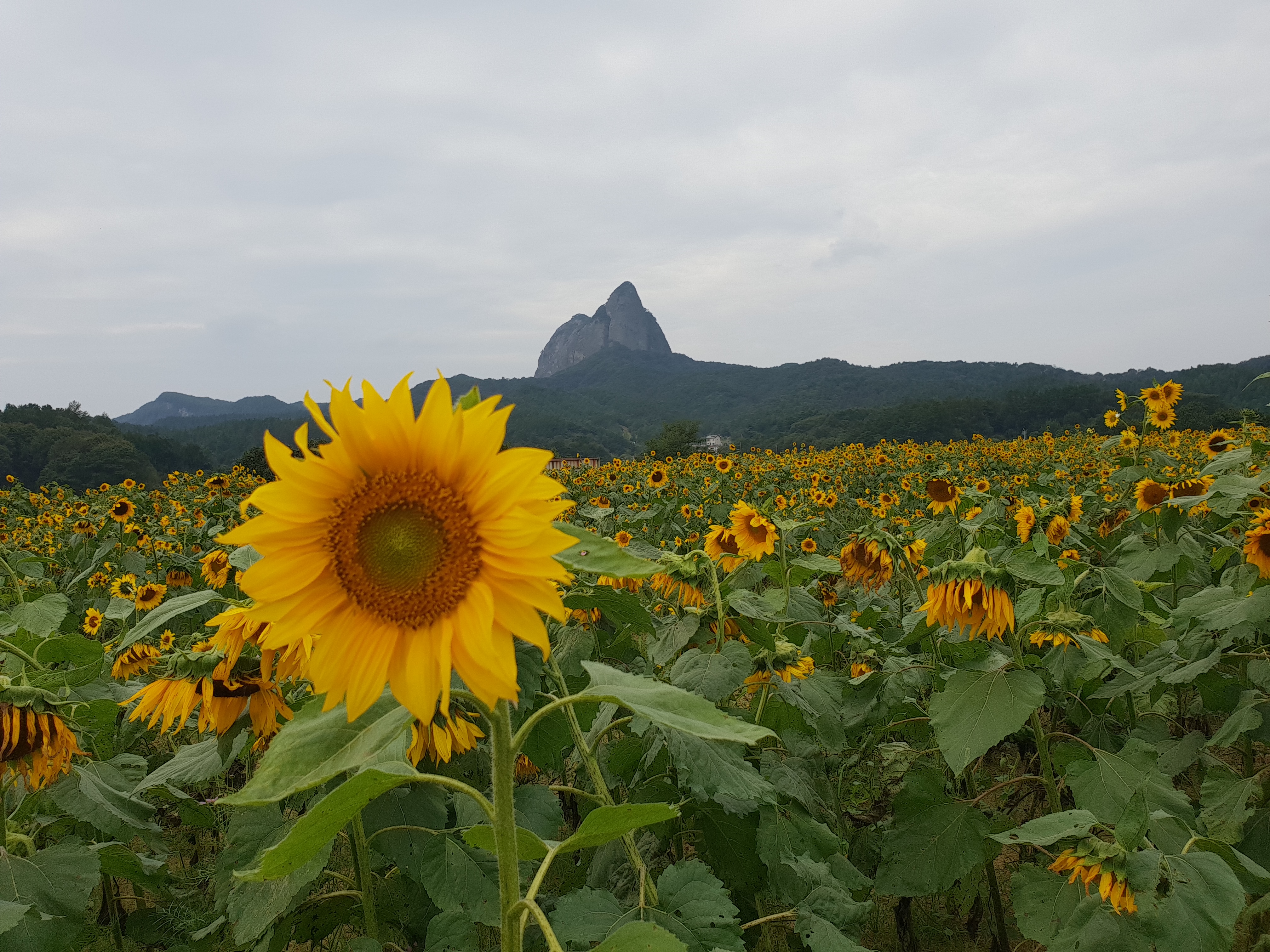 마이산을 끼고 있는 해바라기 밭의 풍경이 너무 아름다웠다.