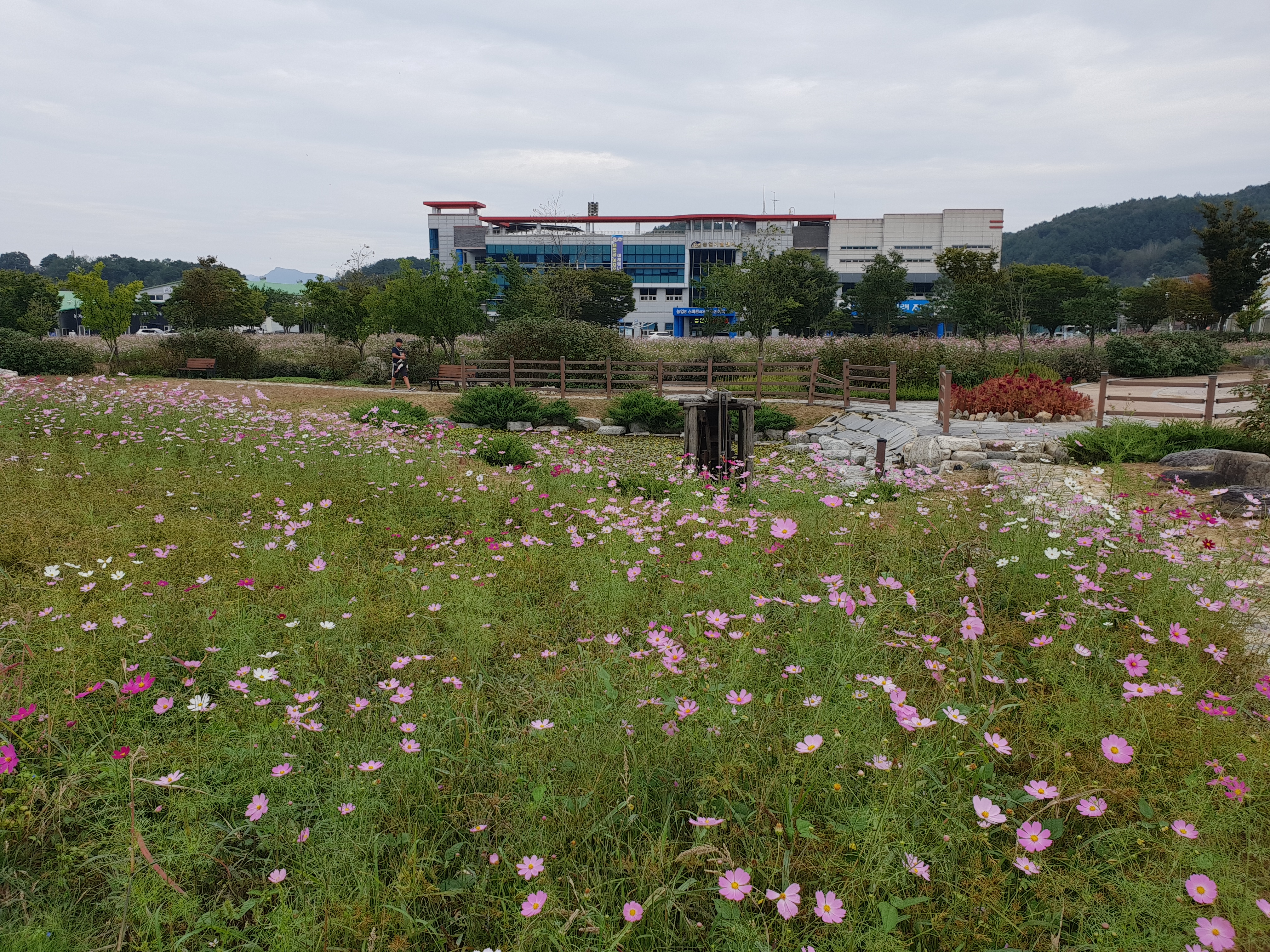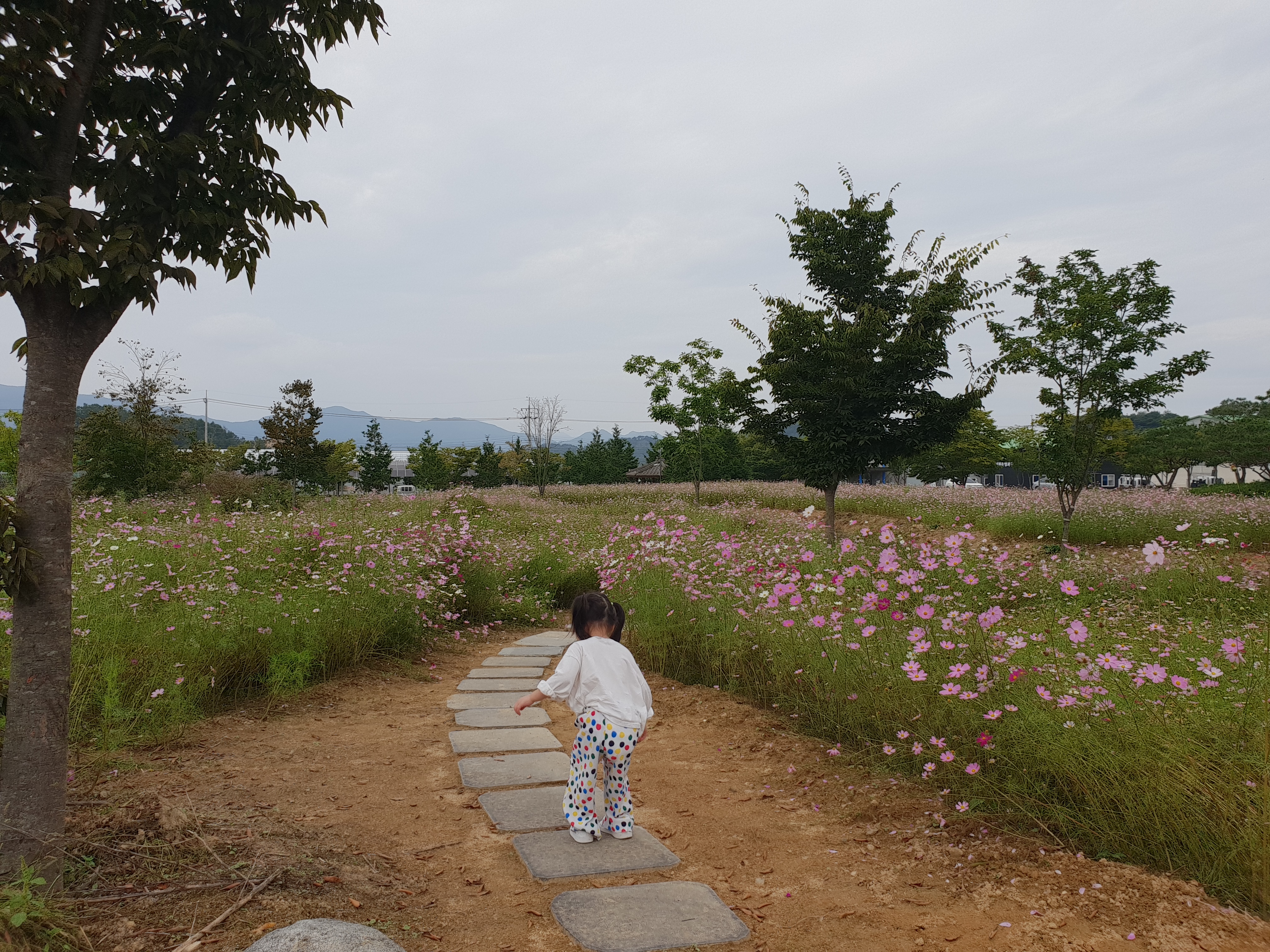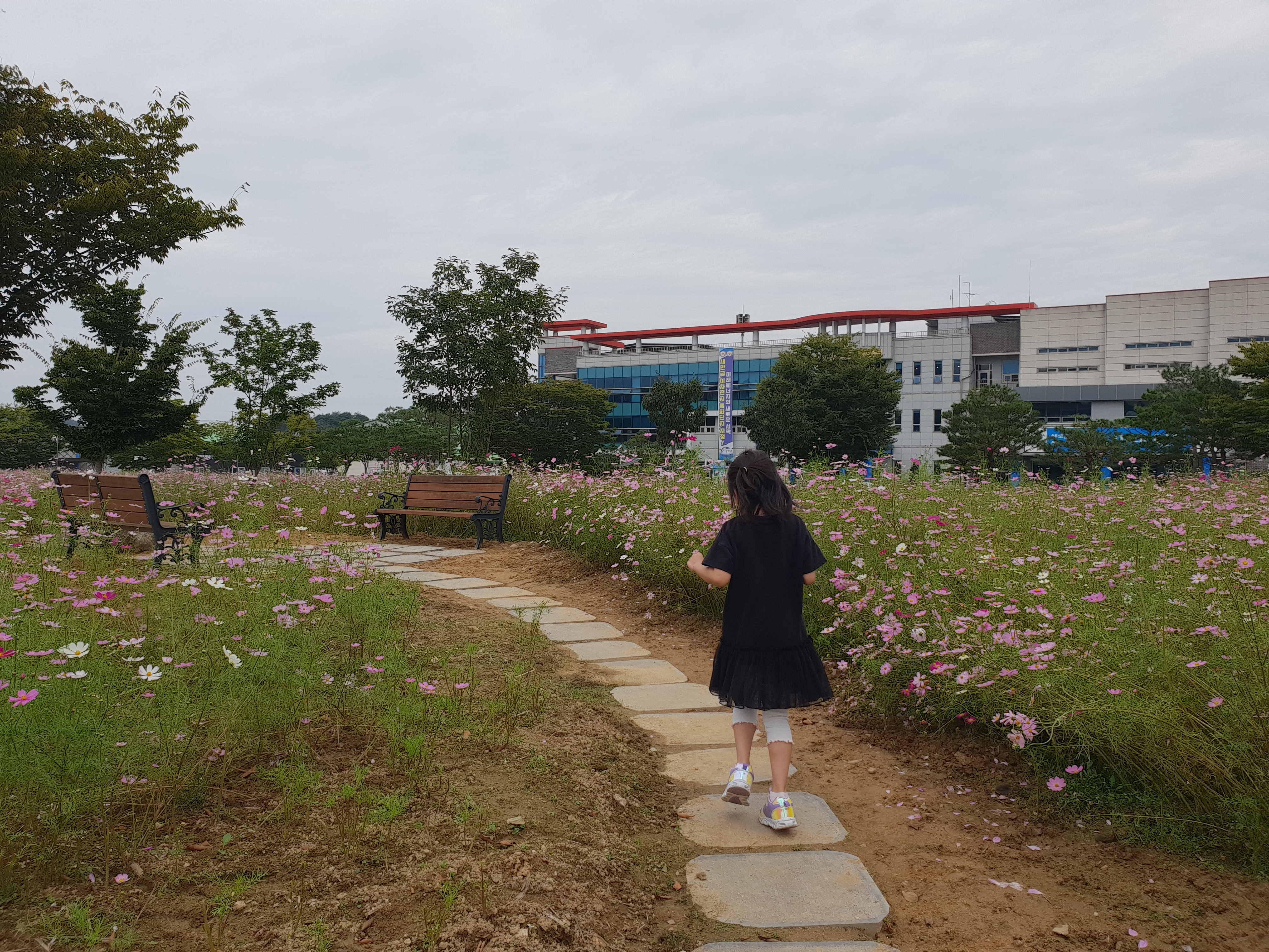 코스모스밭이 정원처럼 잘 조성되어 있어 산책하며 쉬어가기 좋다.