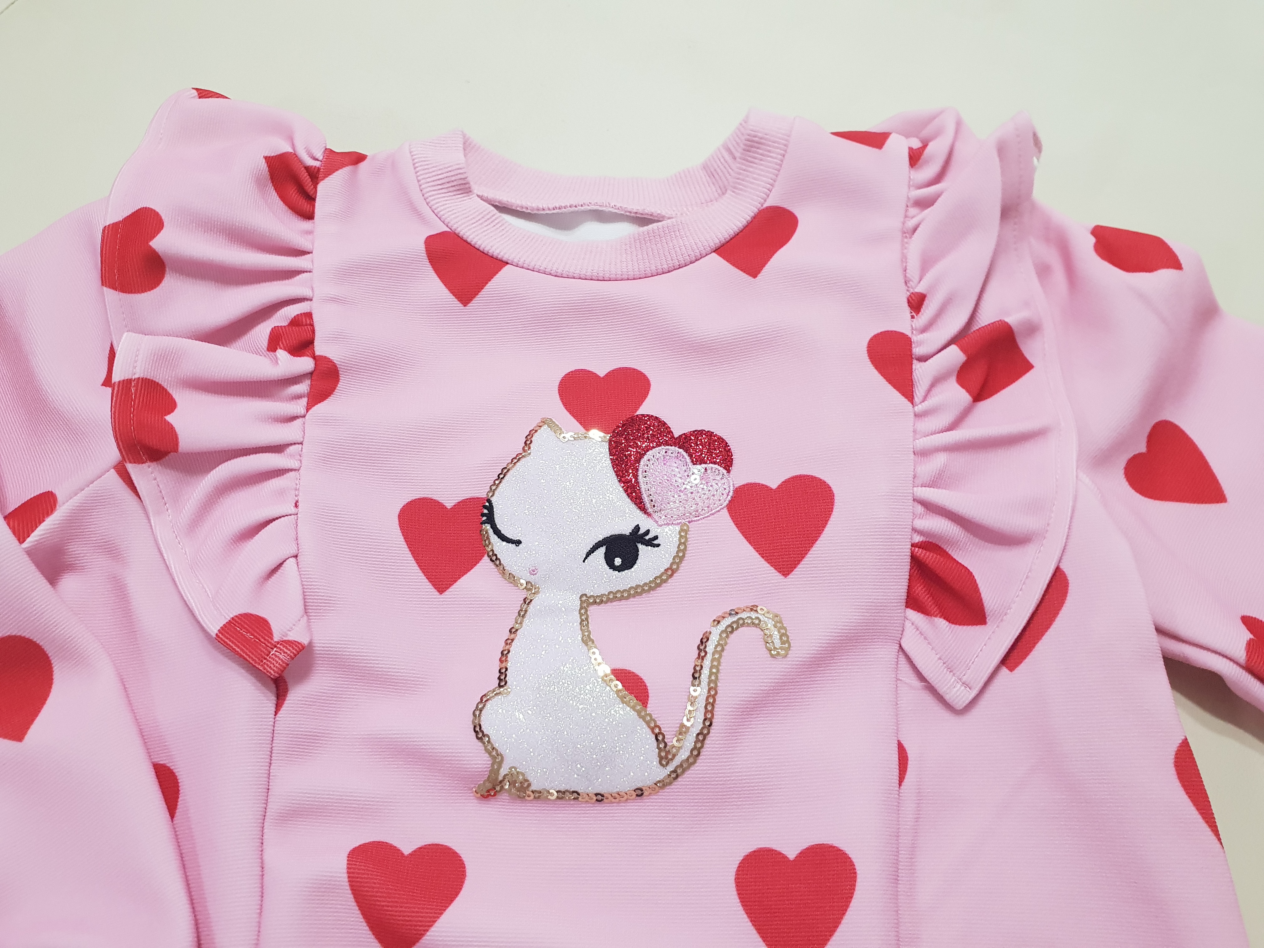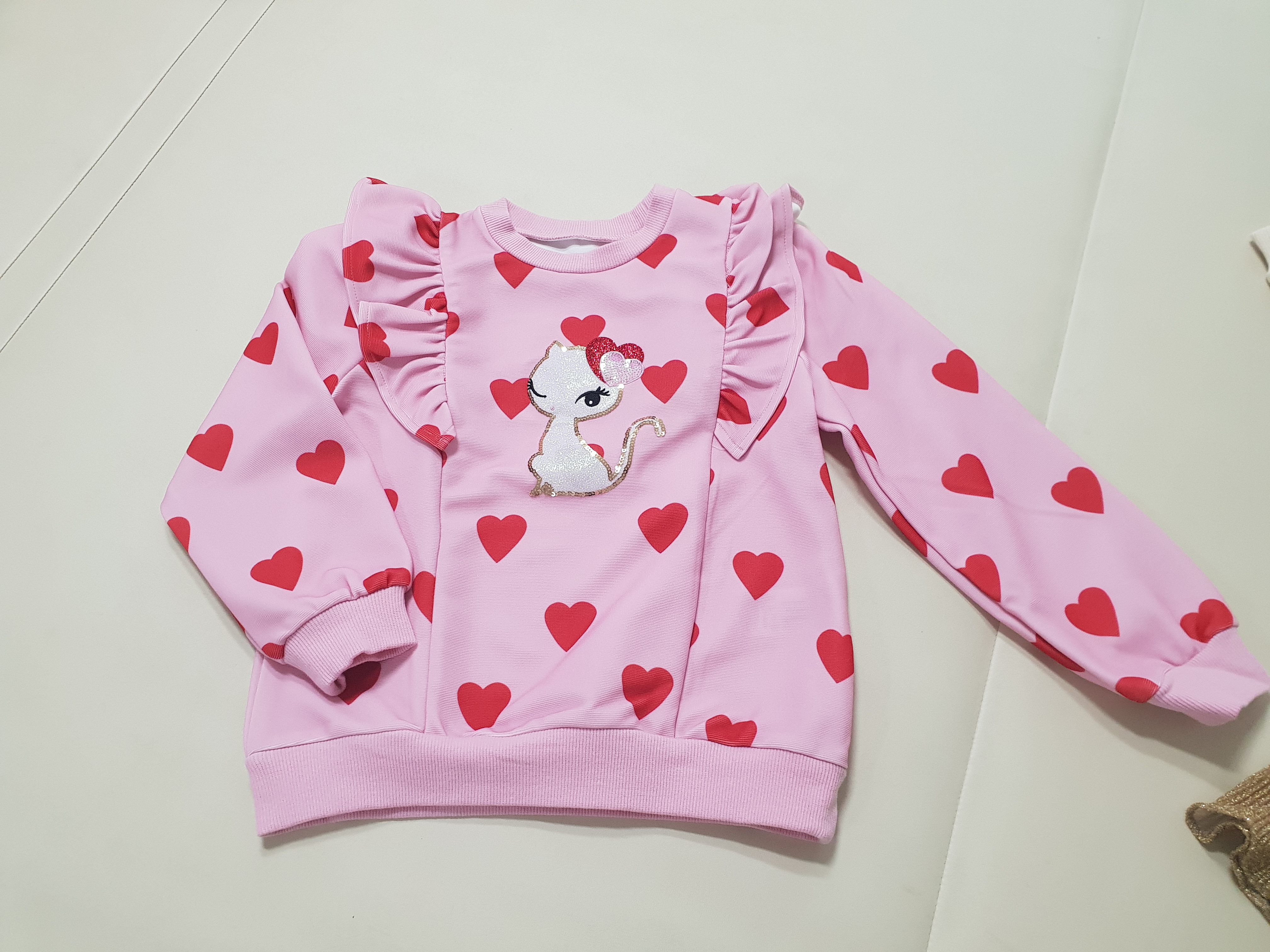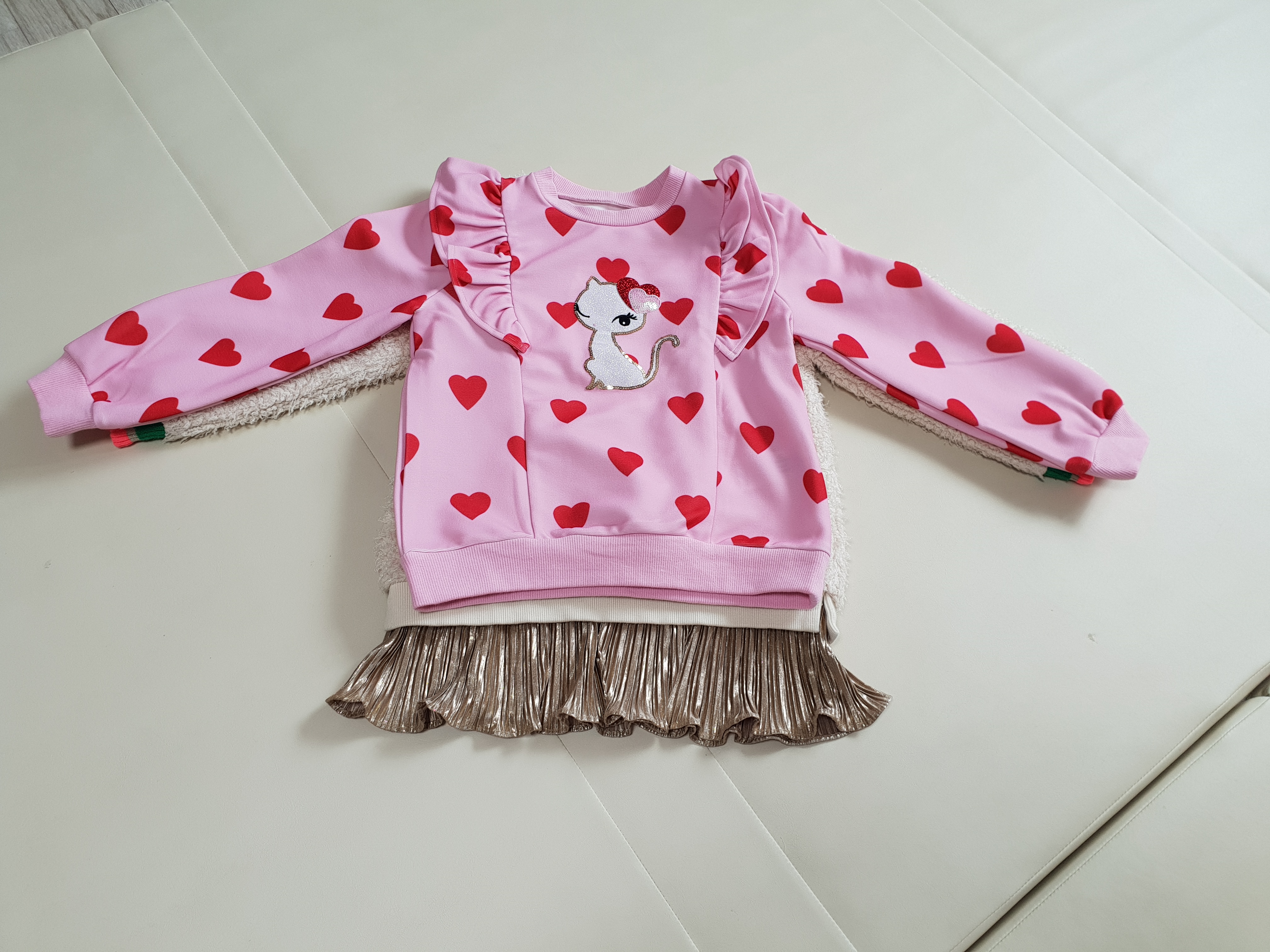 프렌치캣 하트 티셔츠 사이즈는 130, 프릴 롱티셔츠 사이즈는 110이다.
