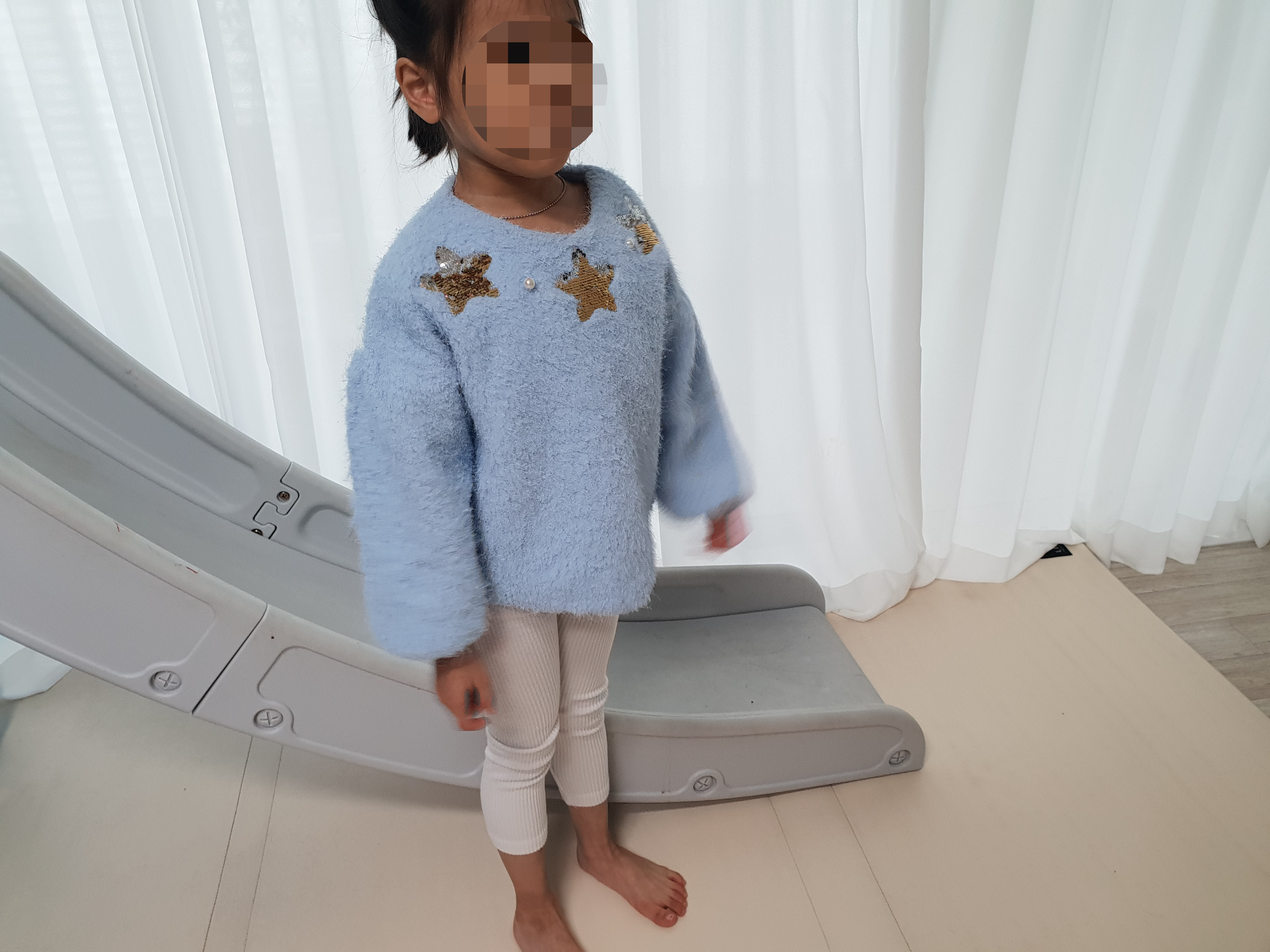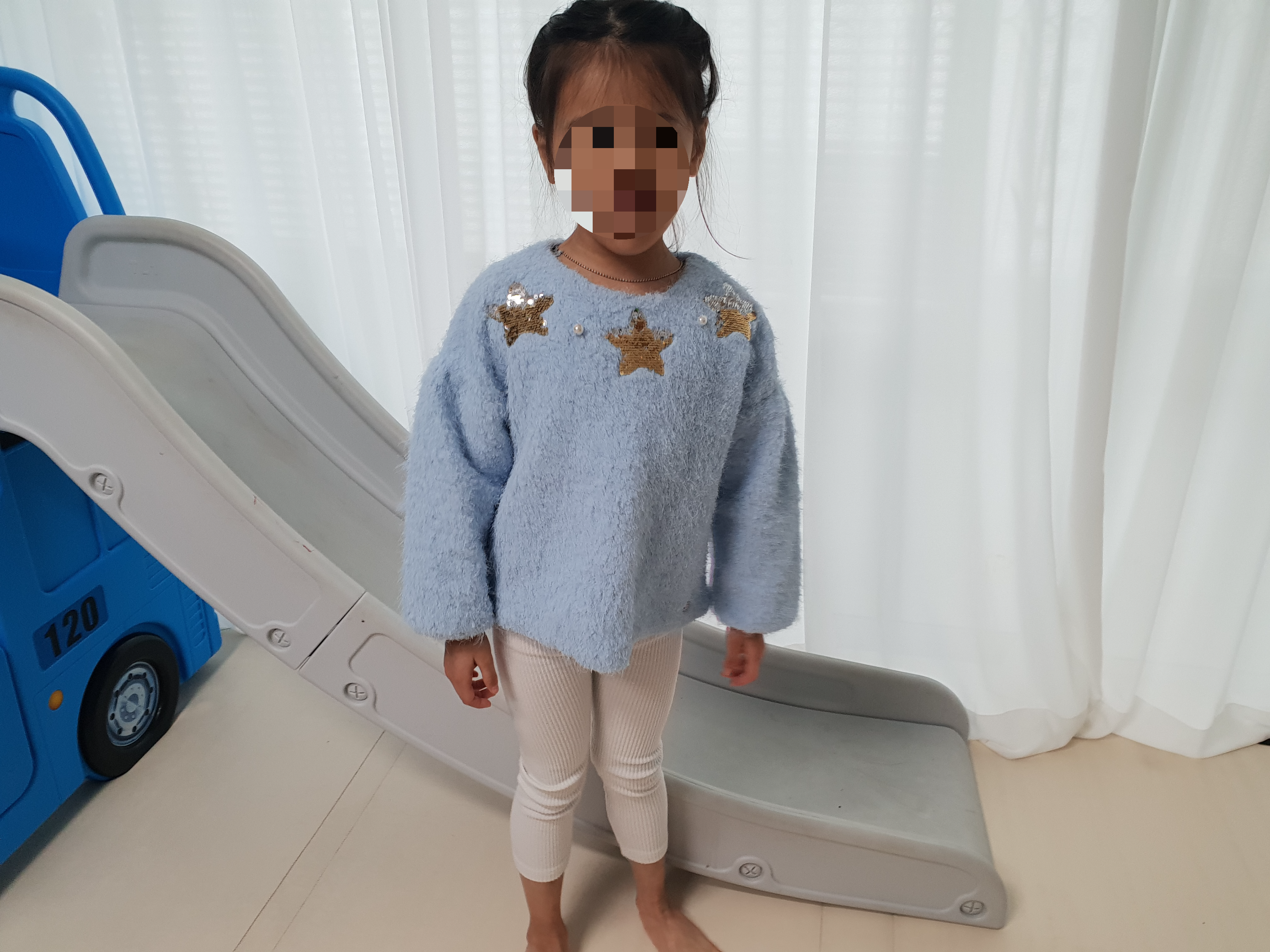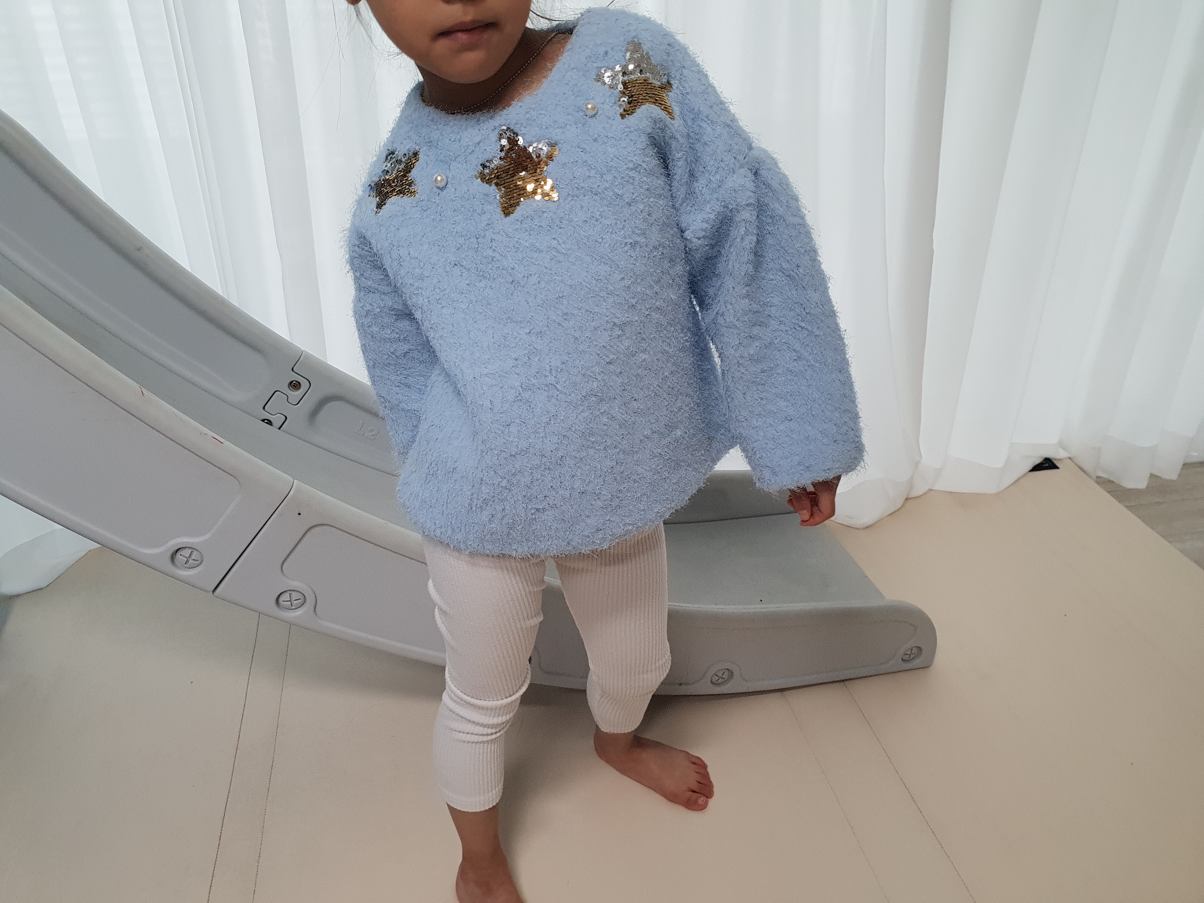 콤마 아동복 레깅스는 사이즈가 딱 맞는 루즈핏 맨투맨 티셔츠랑 입히면 괜찮을 것 같기도 하다.