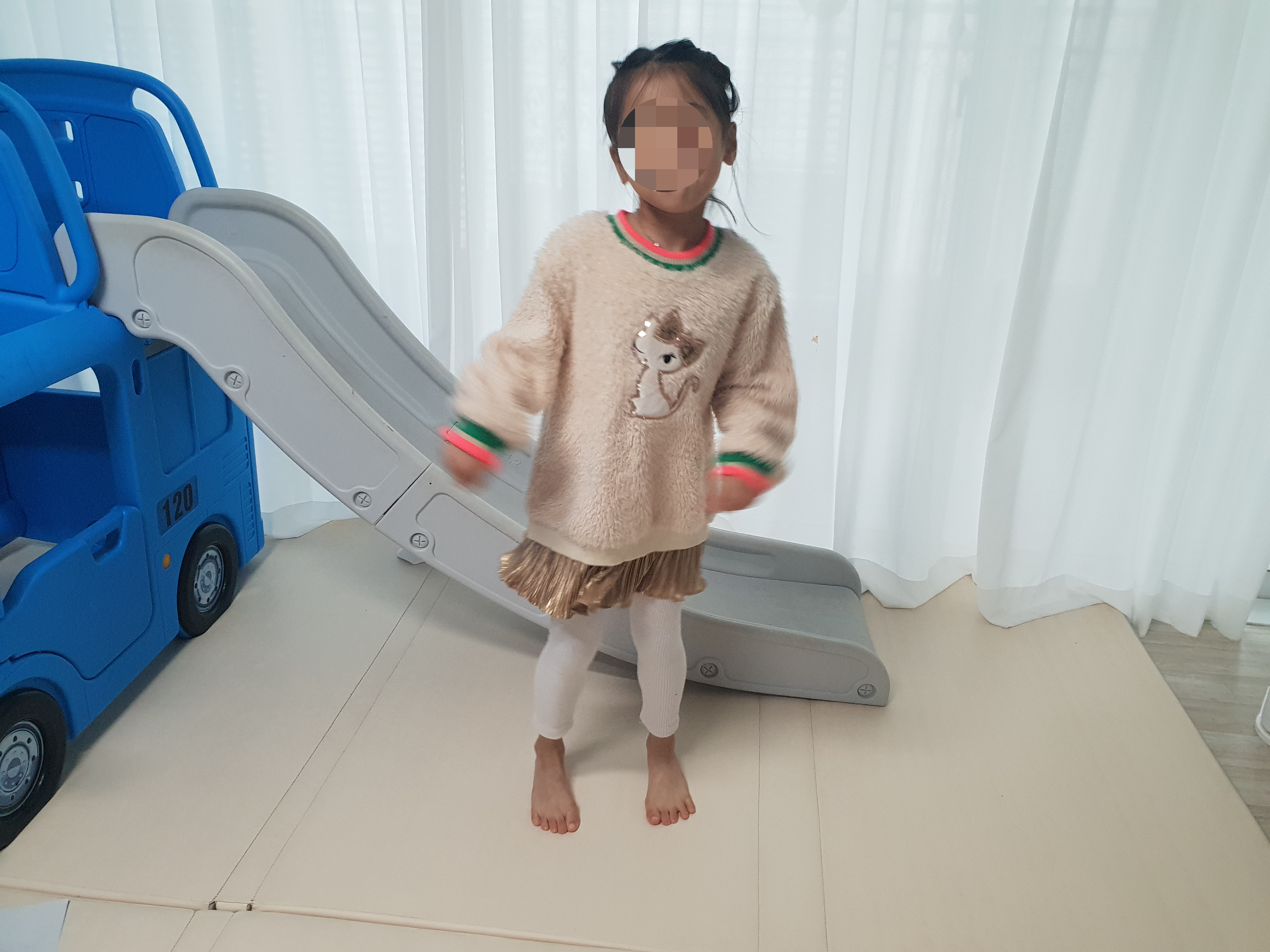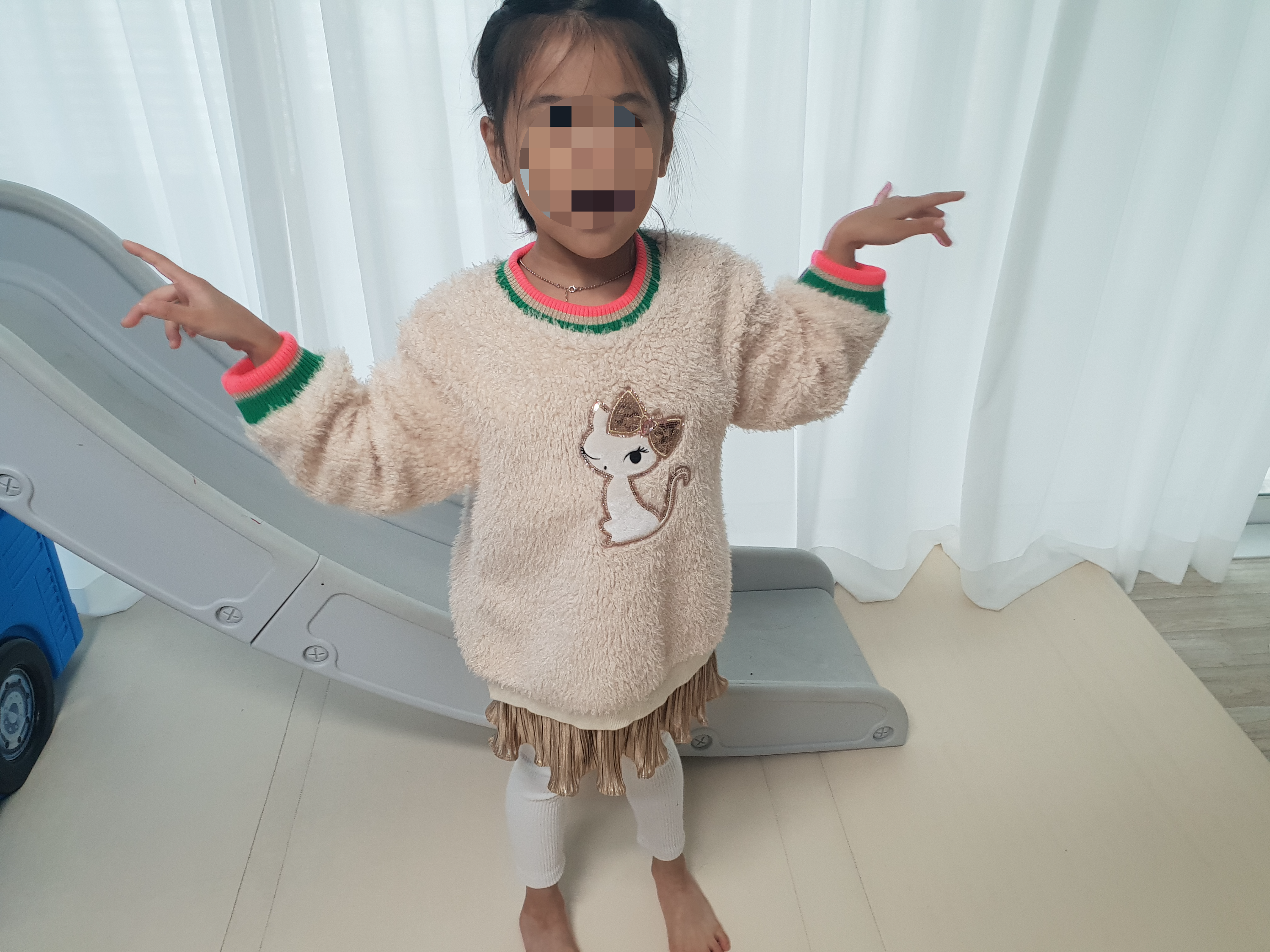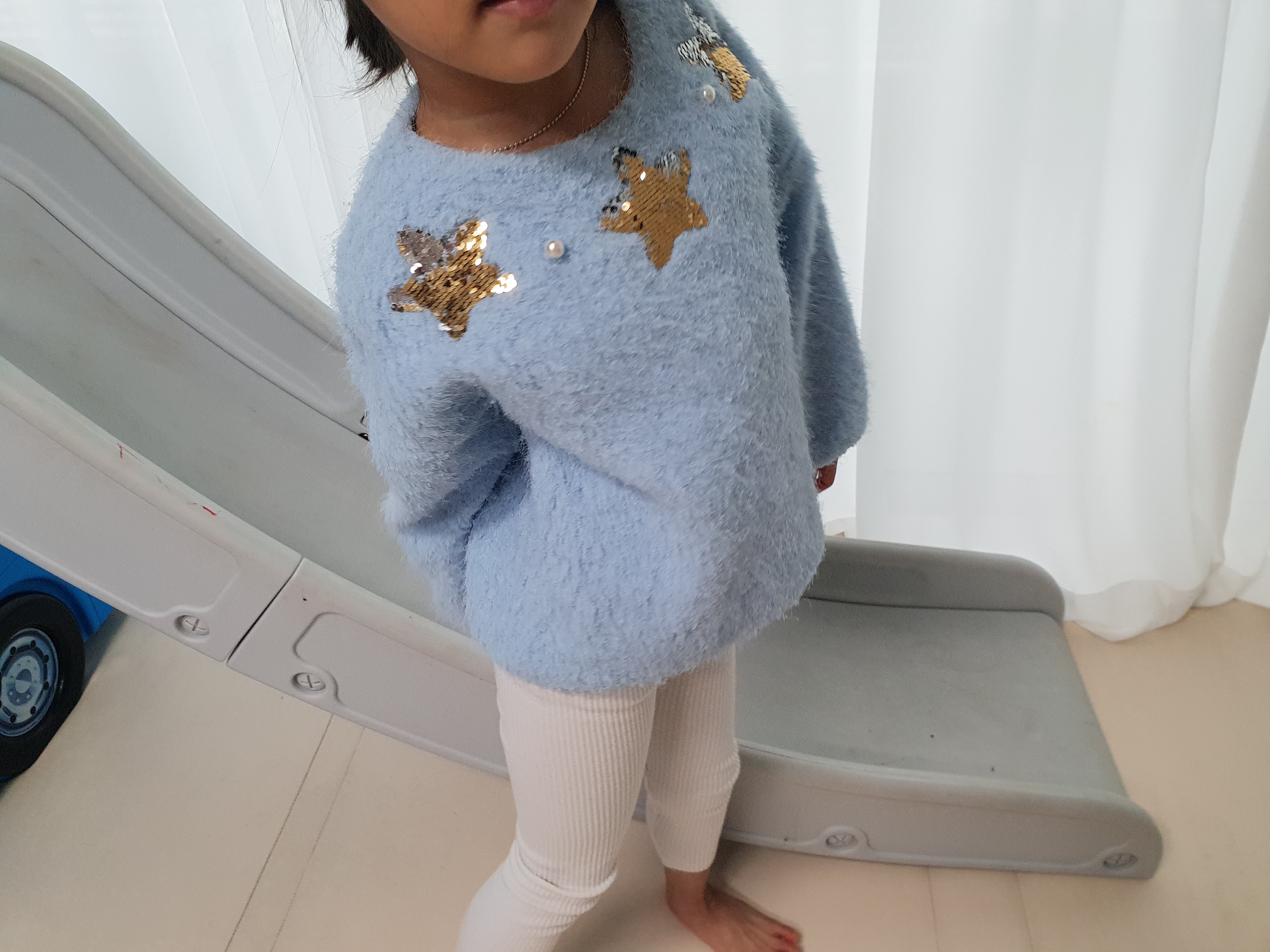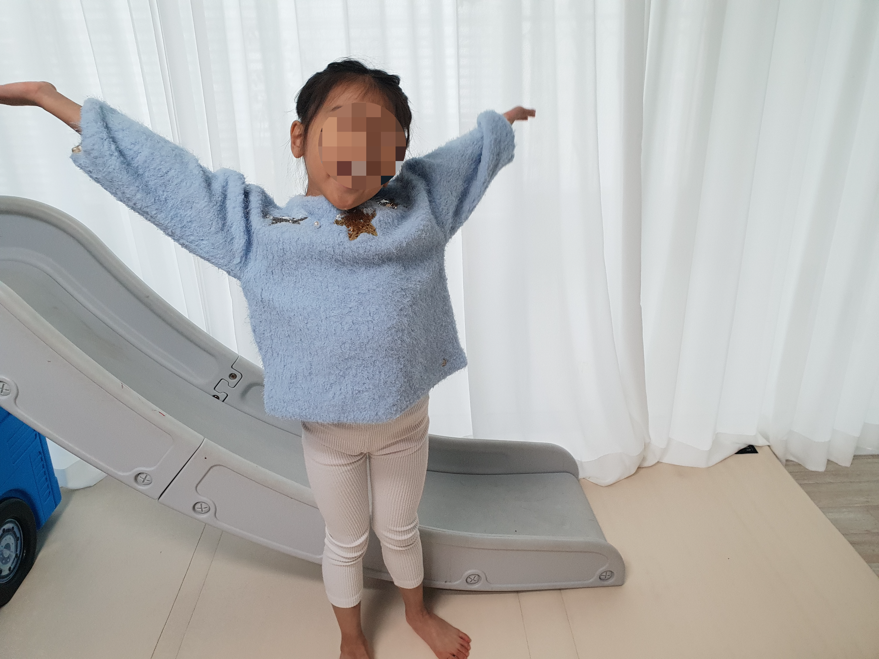 콤마 아동복 레깅스는 사이즈가 딱 맞는 루즈핏 맨투맨 티셔츠랑 입히면 괜찮을 것 같기도 하다.