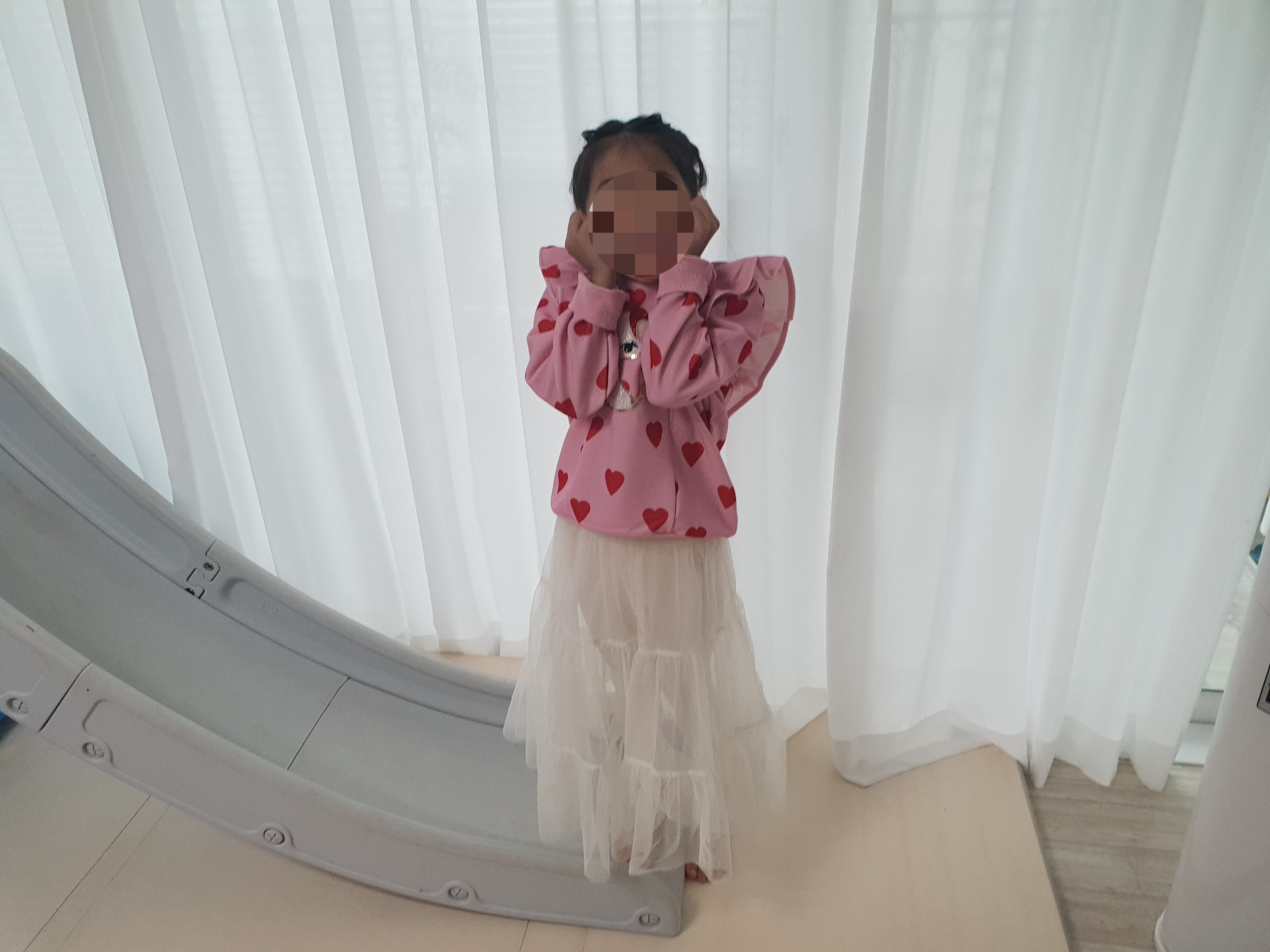 평소에 키즈 사이즈 120 혹은 130을 입고 밀리밤은 원피스 사이즈 140 입으면 살짝 넉넉하게 예쁘다.
